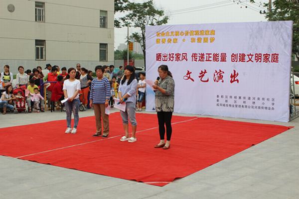 此次匯演,是推進(jìn)社會主義核心價值觀“六進(jìn)”活動的重要載體。從三月初,通過從河南街小區(qū)業(yè)主中,征集好家規(guī)好家訓(xùn)和編寫最美家庭故事的方式,最終甄選確定10戶業(yè)主,在匯演現(xiàn)場分享家法家規(guī),展示家庭“正能量”。在分享的間隙,由舞蹈、歌曲、戲曲等業(yè)主們喜聞樂見的文藝表演穿插其中,使小區(qū)業(yè)主在潛移默化中受到熏陶,增強認(rèn)可。