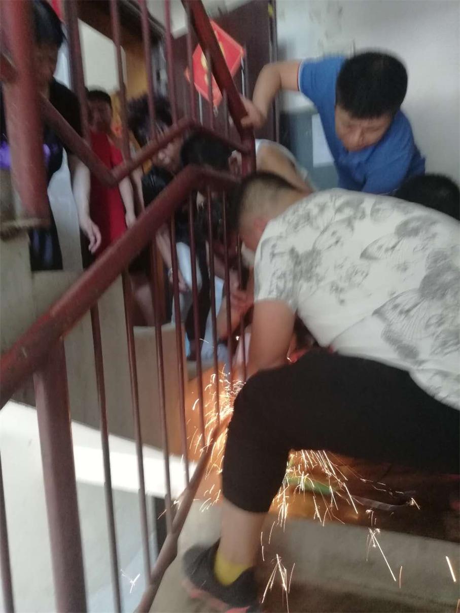 為避免孩子再次受到傷害,維修人員事先對(duì)小男孩的頭部做了適當(dāng)?shù)谋Wo(hù),隨后,用切割機(jī)將護(hù)欄切割開(kāi),隨著“咔嚓”兩聲輕響,一分鐘不到,欄桿鋼條兩端被割斷。5點(diǎn)25分,小女孩毫發(fā)未損,安全脫身。所有的人那顆懸著的心總算放了下來(lái)。