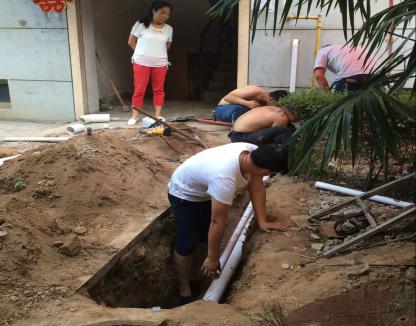 時間已近十二點,維修人員顧不上吃飯休息,歷時一個多小時開挖地面一米左右,查找出了問題管網(wǎng),該段管網(wǎng)發(fā)生斷裂,必須斷水進(jìn)行更換維修。為了盡快完成維修,不影響業(yè)主正常生活,維修人員頂著烈日,在又小又臟又悶熱的地洞里進(jìn)行搶修,最終在下午五點順利完成了維修工作,恢復(fù)了正常用水。