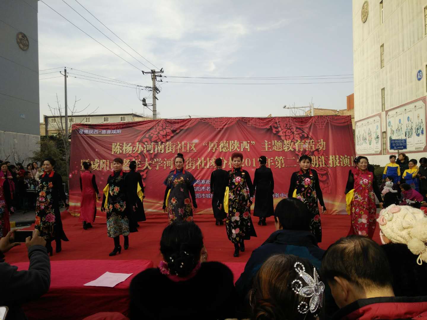 12月26日,城投物業(yè)聯(lián)合河南街社區(qū)開展“厚德陜西”主題教育活動(dòng)暨咸陽市老年大學(xué)河南街社區(qū)分校2017年第二學(xué)期匯報(bào)演出活動(dòng)在河南街小區(qū)舉行,來自河南街社區(qū)、市老年大學(xué)代表共計(jì)二百余人,為活動(dòng)貢獻(xiàn)出了精彩紛呈的文藝表演。